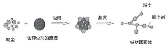 研究證明:粉塵治理的范圍主要是150微米以下的顆粒,特別是10微米以下的可吸入性粉塵顆粒對人體健康危害大。所以,只要產(chǎn)生與可吸入粉塵顆粒大小相當(dāng)?shù)奈⒚准壦F顆粒,在污染源處使粉塵與之吸附、相互粘結(jié)、聚結(jié)增大并在自身重力的作用下沉降,就可在污染源頭控制可吸入粉塵顆粒,從而降低粉塵對人體的傷害,達(dá)到好的粉塵治理效果。