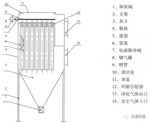 以壓縮空氣為清灰動(dòng)力,利用脈沖噴吹機(jī)構(gòu)的瞬間內(nèi)放出壓縮空氣,誘導(dǎo)數(shù)倍的二次空氣高速射入濾袋,使濾袋急劇鼓脹,依靠沖擊振動(dòng)和反向氣流而清灰的布袋除塵器。