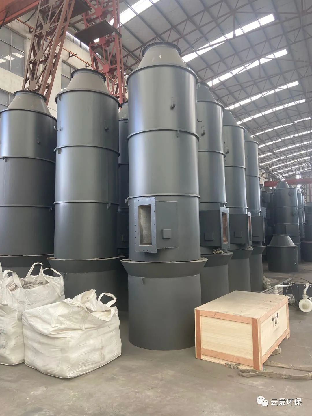 ② 冷卻噴霧塔。預(yù)先直接用水噴霧的氣體冷卻法。為保證袋式除塵器內(nèi)的含塵氣體安全防火,冷卻用水量是控制供給的。大部分燃燒著的粉塵一經(jīng)與微細(xì)水滴接觸即可冷卻,但是水滴卻易氣化,為使尚未與水滴接觸的燃燒粉塵能夠冷卻,應(yīng)有必要的空間和停留時(shí)間。